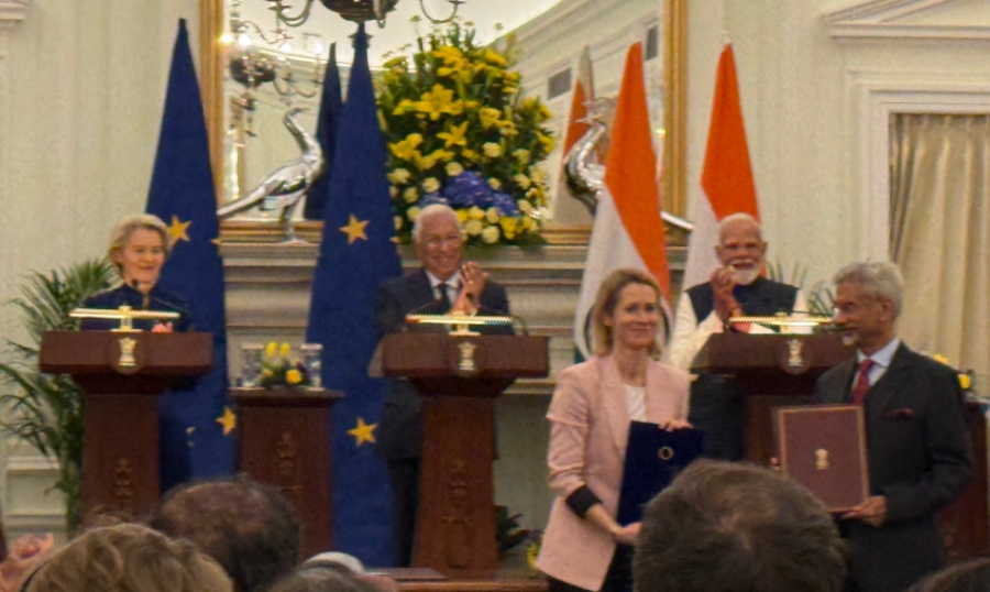 ನವದೆಹಲಿ : ಭಾರತ ಮತ್ತು ಯುರೋಪಿಯನ್ ಒಕ್ಕೂಟವು ಮಂಗಳವಾರ ತಮ್ಮ ಆರ್ಥಿಕ ಮತ್ತು ಕಾರ್ಯತಂತ್ರದ ಪಾಲುದಾರಿಕೆಯನ್ನು ಆಳಗೊಳಿಸುವತ್ತ ನಿರ್ಣಾಯಕವಾಗಿ ಸಾಗಿವೆ, ಎರಡೂ ಕಡೆಯ ನಾಯಕರು ತಮ್ಮ ವಿಕಸನಗೊಳ್ಳುತ್ತಿರುವ ಸಂಬಂಧದ ಮೂಲಾಧಾರವಾಗಿ ಒಂದು ಹೆಗ್ಗುರುತು ಭಾರತ-EU ವ್ಯಾಪಾರ ಒಪ್ಪಂದದ ಸನ್ನಿಹಿತ ತೀರ್ಮಾನವನ್ನು ಎತ್ತಿ ತೋರಿಸಿದ್ದಾರೆ. ಪ್ರಧಾನಿ ನರೇಂದ್ರ ಮೋದಿ, ಯುರೋಪಿಯನ್ ಆಯೋಗದ ಅಧ್ಯಕ್ಷೆ ಉರ್ಸುಲಾ ವಾನ್ ಡೆರ್ ಲೇಯೆನ್ ಮತ್ತು ಯುರೋಪಿಯನ್ ಕೌನ್ಸಿಲ್ ಅಧ್ಯಕ್ಷೆ ಆಂಟೋನಿಯೊ ಕೋಸ್ಟಾ ಭಾಗವಹಿಸಿದ್ದ ನವದೆಹಲಿಯಲ್ಲಿ ನಡೆದ ಉನ್ನತ ಮಟ್ಟದ ಶೃಂಗಸಭೆಯ ಸಂದರ್ಭದಲ್ಲಿ ಈ ಬೆಳವಣಿಗೆ ಸಂಭವಿಸಿದೆ.