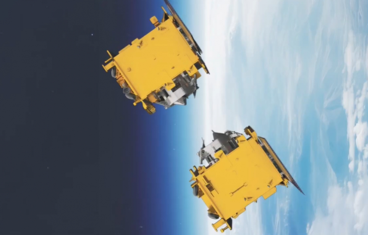 ಎರಡು ಸಣ್ಣ 220-ಕೆಜಿ ಉಪಗ್ರಹಗಳನ್ನು ಕಕ್ಷೆಯಲ್ಲಿ ಪರಸ್ಪರ 3 ಮೀಟರ್ ದೂರದಲ್ಲಿ ತರಲಾಯಿತು, ಅವುಗಳ ವಿಸ್ತೃತ ಉಂಗುರವನ್ನು ಪರಸ್ಪರ ಜೋಡಿಸಲಾಯಿತು, ಹಿಂತೆಗೆದುಕೊಳ್ಳಲಾಯಿತು ಮತ್ತು ಬಾಹ್ಯಾಕಾಶದಲ್ಲಿ ಲಾಕ್ ಮಾಡಲಾಯಿತು.