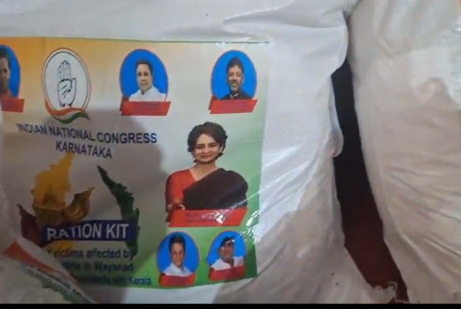 ಕಾಂಗ್ರೆಸ್ ನಾಯಕಿ ಸೋನಿಯಾ ಗಾಂಧಿ ಸುಪುತ್ರಿ ಹಾಗೂ ಕಾಂಗ್ರೆಸ್ ಸಂಸದ ರಾಹುಲ್ ಗಾಂಧಿ ಸಹೋದರಿ ಪ್ರಿಯಾಂಕಾ ಗಾಂಧಿ ವಾದ್ರಾ ಅವರು ವಯನಾಡ್ ನಿಂದ ಉಪಚುನಾವಣೆಯಲ್ಲಿ ಸ್ಪರ್ಧಿಸಿರುತ್ತಿರುವ ಹಿನ್ನೆಲೆಯಲ್ಲಿ ಹಂಚಲು ತಂದಿದ್ದರು ಎಂದು ಆರೋಪಿಸಲಾದ, ಕರ್ನಾಟಕ ಸರ್ಕಾರದ ಸಿಎಂ ಡಿಸಿಎಂ ಚಿತ್ರಗಳಿರುವ ರೇಷನ್ ಕಿಟ್ ಗಳನ್ನು ನೆರೆರಾಜ್ಯದ ಅಧಿಕಾರಿಗಳು ವಶಕ್ಕೆ ಪಡೆದಿದ್ದಾರೆ.